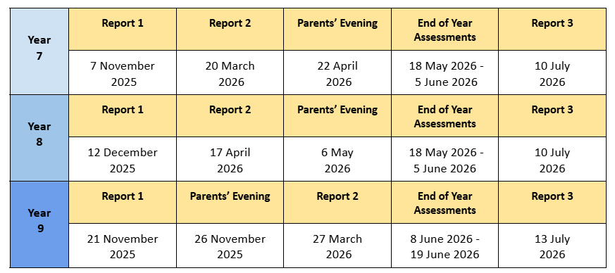 KS3 Reporting Dates 2025-2026
