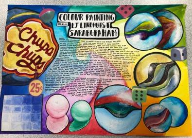 The course provides students with the opportunity to develop visual skills and to express ideas by working through a variety of projects.There are opportunities to experiment with different media in order to explore individual strengths and preferences. A wide range of options are available and it is possible to specialise or to work in several areas.Knowledge of contemporary and historical art & design is acquired through work in school and by visiting galleries, museums, workshops and studios.
