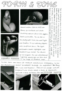 to galleries and exhibitions in order to experience work at first hand. Students must commit to five hours of photography preparation per week. Students must have access to a digital camera. The photography will be created digitally. Students will develop their knowledge of digital manipulation using our Photoshop Suite.