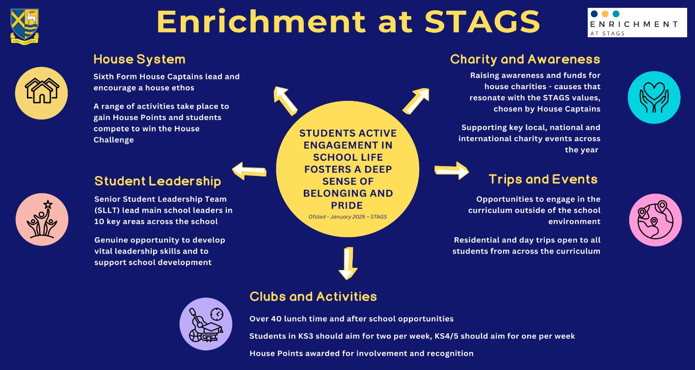 There are a wide range of Clubs and Activities that take place both during and after the school day for all Year groups. From art and debate clubs, choir and netball, the More to Life Christian Society, History Film Club, Fem Soc, Asian Heritage Club and much much more, we offer a breadth of experiences and encourage all students to participate in at least two activities a week. Whilst the offer at STAGS is vast and designed to provide activities and opportunities that are representative of our student body, their backgrounds and interests, where students have requested particular clubs, we do our utmost to facilitate these requests and continue our strong student voice 'You Said, We did' approach.